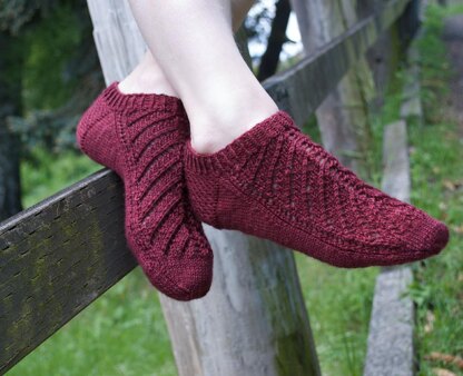A sweet, lacy ankle sock that can be worked up quickly. I wear mine with Dr. Marten Mary Janes, but I've heard stories (and seen photos) of how wonderful they are with Danskos and other footwear.