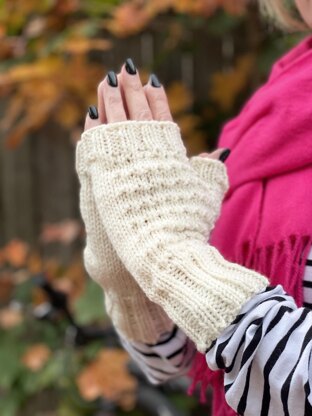 Andalusian stitch provides a simple but elegant texture to these warm and cozy fingerless mitts. They knit up quickly and make a perfect gift!