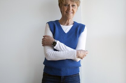 Introducing We've Been Happy Here, a vested version of Just Breathe (its pullover predecessor), but top-down this time and with worsted yarn, giving its sturdy stitches some surprising lightness. Wide trims of ribbing, spawned from stitches picked up around neckline and armholes, surround the Broken Rib stitch pattern of its evenly knitted bodice. A needle change at the hemline gives its ribbing there some extra spring. This is another fun, quick knit, with year-round wear-ability. Enjoy!
