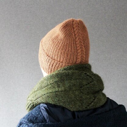 A beautiful wheat ear cable runs along the front and back of this hat highlighting the modern crown shaping. It is surrounded by ribbing and the folded brim makes this hat extra cozy.