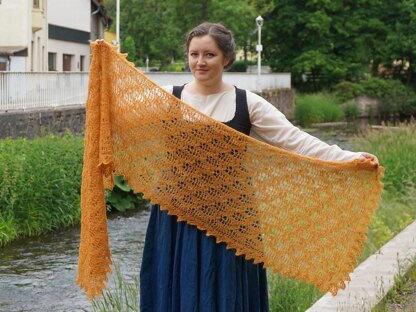 Inspired by fields of wheat and lovely Shetland lace, when made in lace-weight mohair yarn, this Tunisian crochet wrap envelops you in warmth and softness on chilly summer evenings.