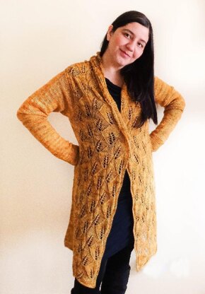 Wheatfield Cardi is worked seamless from the bottom-up, made in fingering weight yarn, so is great for all seasons. The cardigan has a great drape and fits well in all kinds of bodies.
