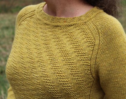 Knit from the top down in one go – no short rows, no stitches to pick up. Modified raglan shaping gives a more flattering fit through the shoulders. Textured panels on the front and back combine with stockinette panels at the sides, giving a slightly longer hemline on the sides due to the difference in row gauge.