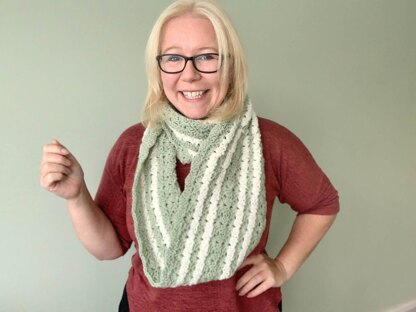 The scarf you'll create is long enough to double wrap around your neck for extra cosiness or draped around the neck to cover the space created wearing your over coat open or double wrapped around your neck.