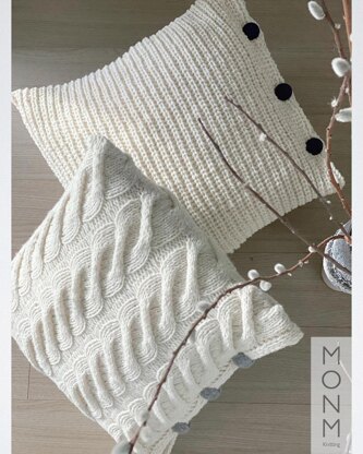 ‘When basic is enough’ dual pillowcases are two chunky fall/winter pillowcases. Basic cable pillowcase features large scale repeating cable pattern, side double-knitting bands for side closure and double sided statement buttons. Base ribbing pillowcase features continuous half-brioche ribbing, seamless ribbing bands for side closure and double sided statement buttons.