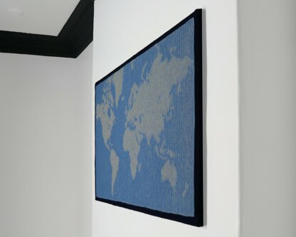 This map is not much use for planning your holiday but it is fun to have hanging on the wall. When you look straight at the knitting you see only stripes. When you move to the side the map magically appears.