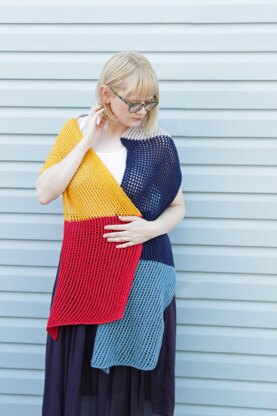 The Wherever Wrap is a fun colorblock pattern knit with a simple lace motif. This pattern is worked on the bias, alternating between leaning to the left and leaning to the right, resulting in a fun zig zag effect that opens up some cool possibilities for styling with your favorite summer outfit or on the beach.