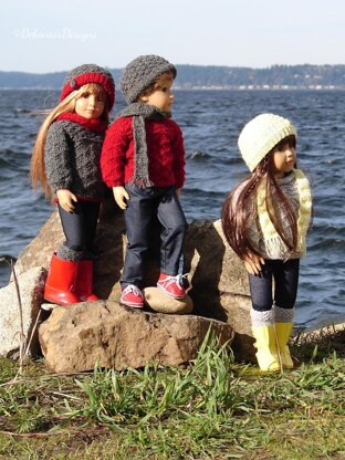- Materials used: Cascade Sport 220 5ply® in Ruby colorway (modeled by Leroy), in Charcoal Grey colorway (modeled by Lena), Modern Baby by Lion Brand in