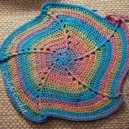 Gauge is not particularly important to this pattern, but I have included my gauge for the basic 4-weight/Aran yarns like Red Heart Super Saver and Loops & Threads Impeccable. The pattern is repetitive, and with an increase in the same place each time it is easy to memorize right from the beginning. Bonus: you can make it as big or small as you like!