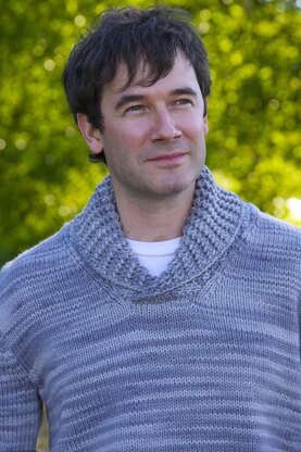 Inset sleeves, a shawl collar, and English tailored shoulders give it the comfort a man wants for serious beachcombing. The rugged location just calls out for a sweater like this to brave the challenge of the waves and the wind.