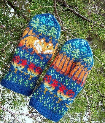 The PDF has two slightly different options for the palms and cuff. The foxes' eyes and nose - duplicate stitch embroidery; if the background color under the fox is dark, you will need to embroider a few stitches on the foxes' face white. As always, I want to thank testknitters for their help and pictures (will post more soon).