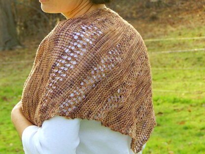 Wicker is an asymmetrical and completely reversible garter stitch shawl that includes panels of simple openwork. These panels are separated by a gradually increasing number of garter stitch rows and appear at a diagonal on the shawl. The original size of the pattern also makes this a perfect scarf option.