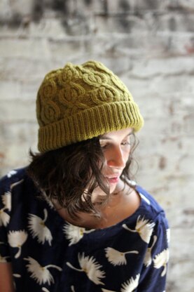 I love these squishy, round, and bold cables - and I'm obsessed by the dense crosses that separate each round section. To really give them some presence, I worked them in offset columns, and then ended the last repeat in shaping that gives the crown some extra squish up top. Plus that deep brim means your ears are covered and gives the hat the exact look I was going for.