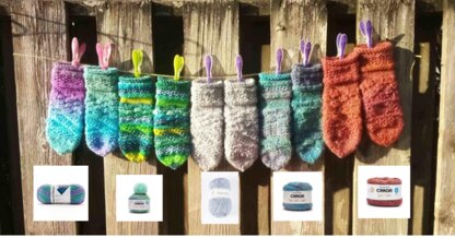 Caron Chunky Cupcakes: This yarn produced mittens that were light, stretchy, and fun. Not as warm as other yarns, but great for days when it’s not super cold. One ball makes one pair.