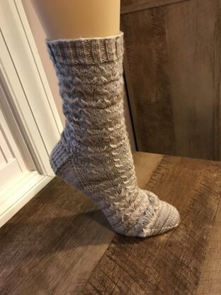 These socks are designed to have the look of wisps of oats going up the foot and leg. They are a quick and simple knit that gives a nice detail for even a busier yarn.