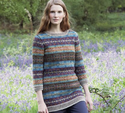 WILD ROSE is a beautiful fitted tunic from the WILDWOOD collection. Using 12 colours of BRITISH BREEDS, this design is knitted flat and is inspired by traditional Fairisle motifs and patterning.