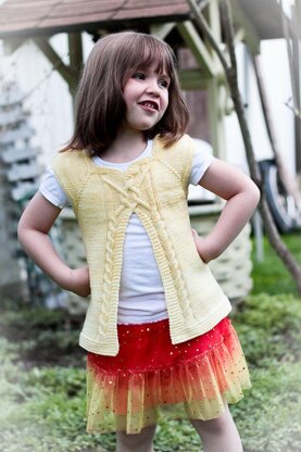 It is worked as a top down raglan cardigan/vest; the design offers a few small interesting twists in the otherwise simple construction, thus providing an engaging knit to knitters of all levels of experience. This piece makes such a great layering garment for everyday wear and school, a must in every busy girl’s wardrobe.