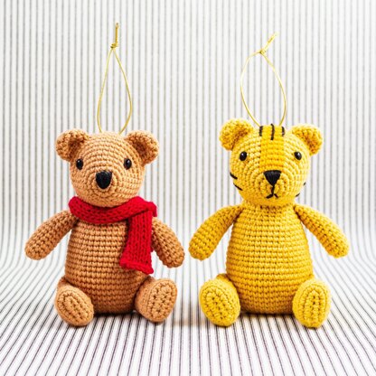 The Wild Woods Ornament Set is inspired by a snowy wintertime forest. We have included two unique but simple to make ornament patterns for a cuddly bear and a friendly tiger. These two make magical additions to any Christmas decor and would also be lovely stocking stuffers or last-minute gifts!