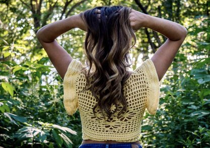 It’s no secret that I’m in love with wrap tops for the summer. This design features my favorite ruffle sleeves as well as a fun design in the back to add some flare so grab your hook, and let’s get crocheting!