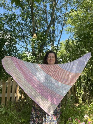 This a-symmetrical triangle shawl was inspired by the many beautiful and colourful wildflowers I have in my garden and the gorgeous colours in the mini skein set (a special thanks to my mum who gave me the set of minis from her yarn stash).