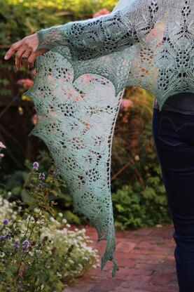 - I used Farbmasche Merino/silk laceweight yarn at 800 metres per 100 grams, in the gradient dyed colourway New Green.