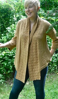 Notes: This cardigan is intended to be worn with 1-3 inches of negative ease. For best results, choose the next size down from your actual bust measurement. Cardigan is knit from the top-down, then collar stitches are picked up and knit in the knit/purl arrow pattern.