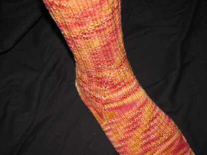 Child to adult size socks, with ribbing throughout to aid in fitting a wide range of widths, and providing some stretch in the length as well. The bottom of the heel is reinforced for padding and durability.