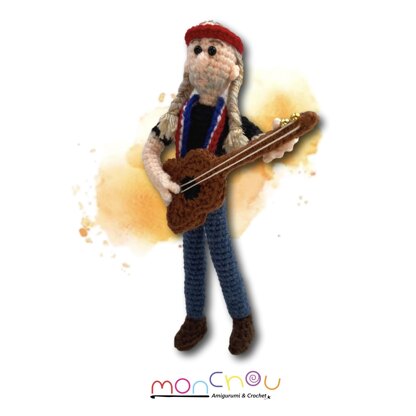 This icon of country music is worked in worsted weight yarns, has wired limbs and of course, his trusted guitar for makin’ music with his friends.