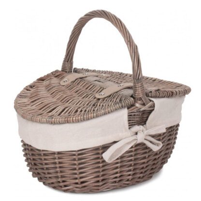 Willow Direct Small Antique Wash Finish Oval Picnic Basket With White Lining - 300x230x170mm