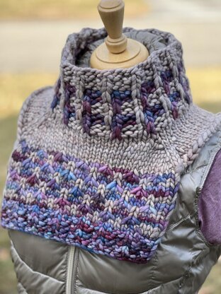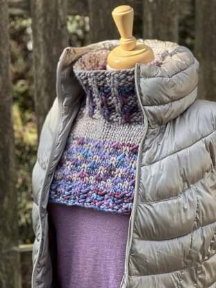 Windchill Warning, the first pattern release in the Friluftsliv Cowl Collection, is worked top down in the round until the shoulders are bound off, and the front and back are finished flat. German Short Rows and raglan shaping create a traditional dickie shape and buttery soft Malabrigo Rasta yarn provides cozy warmth. A complementary hat pattern, Windchill Warning Beanie, is available in five sizes. For most sizes, the set can be made with three skeins of Rasta (2 tonal, 1 contrast).