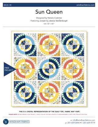Windham Fabrics Sun Queen - Downloadable PDF is a free Intermediate Quilting pattern by Natalie Crabtree, available as a Downloadable PDF and includes instructions in English. Super fun to make, this pattern could be your next masterpiece!