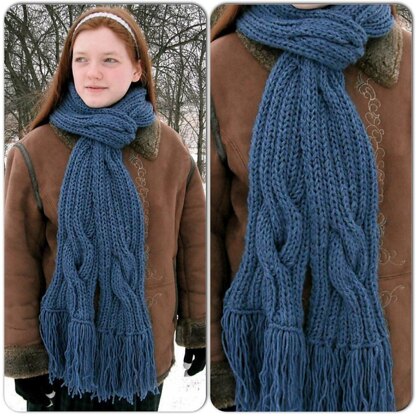 Winding River Ribbed Scarf adds a new dimension to the traditional ribbed scarf. With just two simple cable twists, you can turn a plain ribbed scarf into something extra special. Knit with two strands of yarn on large needles, and great for both men and women, it’s a quick, easy knit you’re sure to enjoy.