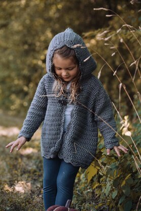 A classic style made in alternating rows of single and double crochet stitches, this toggle front cardigan features a shell stitch edging and an adorable granny square closure. Keep your little one warm on a chilly afternoon with this charming pattern.