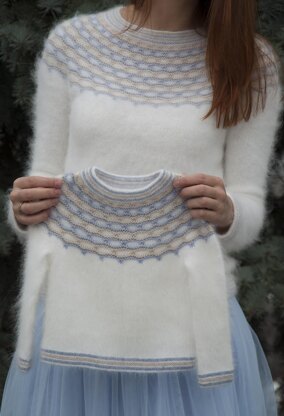 "If angels wore pullovers, I know who would knit them for them!" - these words said by my friend gave the name to this design. It was originally created for my daughter, but my Instagram followers showed so much love to it, that I decided to make and publish the pattern of adult and kid versions.