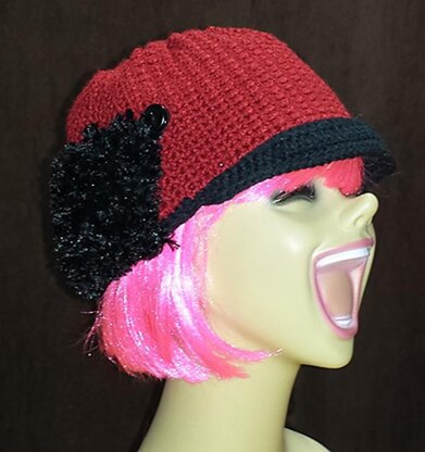 A thick crocheted cap with soft flap that can be left buttoned up, or worn flap down to cover your ears, and the nape of your neck.