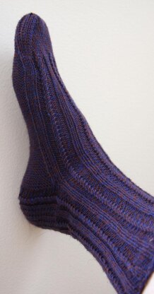 An easy mock cable sock perfect for either men or women. Perfect for a traveling project. This features a princess sole for those with more sensitive feet, though instructions for a standard sole are also included.