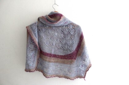 Winter Halo is a Hap style shawl, full of fun techniques including lace work, short rows, and a delicate picot edging.