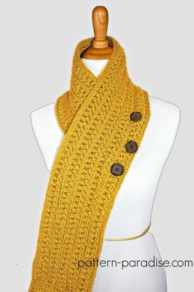 This scarf has a neat knit look, and can be worn in a variety of configurations. I added buttons, but of course, that is optional. It's easy to adjust length and width too, just follow my simple guidelines!