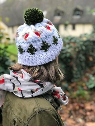 The Winter Robin Beanie requires less than 100g of the main colour (white in the above pictures), 50g of the colour which includes the pom pom (green above) and less than 10g of blue, red, brown and orange.