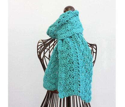 Pattern for a pretty lacy winter scarf. The pattern uses readily available worsted weight yarn. It can easily be made wider or longer.