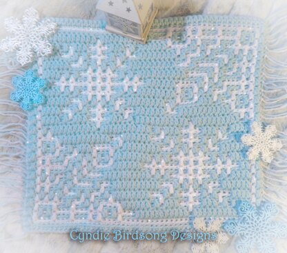 This features beautiful softly floating snowflakes on a solid background - the sample image uses sparkly Big Twist Twinkle yarn in white for the snowflakes to give that added sparkle! This square is perfect for Christmas & Winter decor projects such as blankets, pillows, satchel bags, placemats, etc.