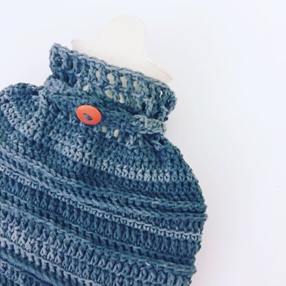 Pattern includes a cover for a 2L hot water bottle and wrist warmers in 3 sizes.