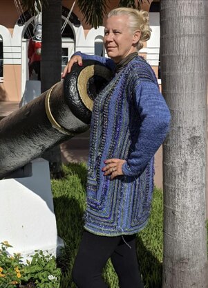 A Miter rectangle jacket with 3 different yarns This cardigan/jacket is a wonderful addition to your wardrobe. 4 different sizes available.
