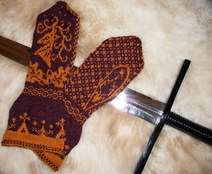 A warm pair of mittens inspired by the series Game of Thrones. Colour work with charts. **Uses 4 ply yarn in 2 shades, uses approximately 75g of each.