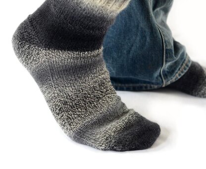 These are basic, cozy socks, knit from the toe up with a short row wrap-and-turn heel. The soles are purled for increased comfort. With the stockinette stitch inside the sock, the wearer won't be able to feel the stitches pressing into the bottoms of their feet.