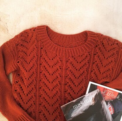 Wolf River is worked flat from the bottom up, beginning with the hem. The front and back are knit separately, but both are worked the same. After the neckline is shaped short rows are worked to shape the shoulders and then these stitches are placed on hold. When both the front and back pieces are completed, the shoulders are grafted together and the sweater is seamed at the sides. Stitches are picked up around the armholes and the sleeves are knit in the round. Finally, stitches of the neckline are picked up and the neckline is worked in the round.
