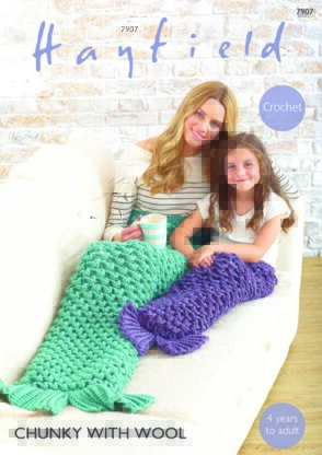 Women and Girls Mermaid Tails in Hayfield Chunky with Wool - 7907 - Downloadable PDF is a Intermediate Crochet pattern by Hayfield, available as a Downloadable PDF and includes instructions in English. Super fun to make, this pattern could be your next masterpiece!