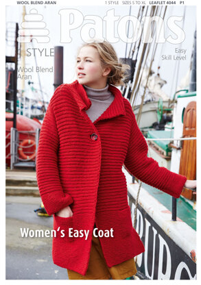 Women's Easy Coat in Patons Wool Blend Aran - 4044 is a Knitting pattern by Patons, available as a Leaflet and includes instructions in English. Super fun to make, this pattern could be your next masterpiece!