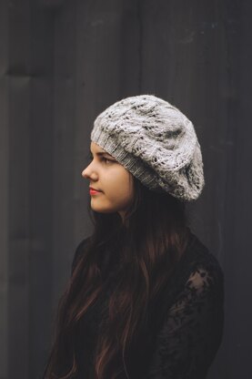 Sophisticated beret featuring intricate leaf lace motifs with optional inner lining for reversible wear. Seamless construction creates rich woodland texture perfect for elegant style.