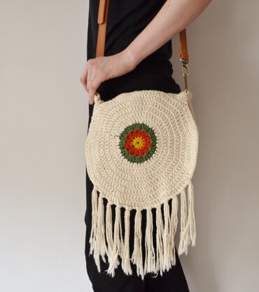 This easy-to-hook bag is also easy-to-wear! Inspired by 1970s designs, the bag is made in thick cotton then lined in a vintage bedspread fabric for extra strength. With a magnetic clasp and fold-over flap, the bag is ig enough for all your essentials for an adventure in the woods, to the beach, or at a festival.